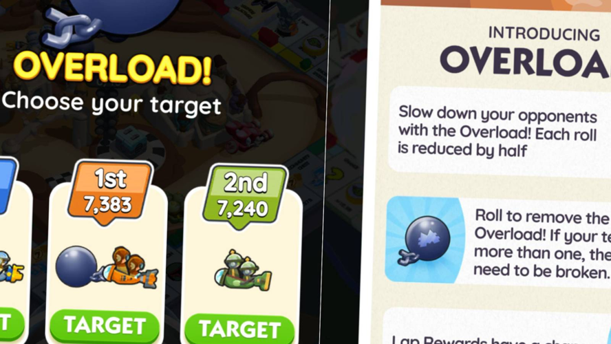 The overload booster in Monopoly GO is a strategic tool designed to hinder rival teams during races by significantly reducing their dice roll outcomes for a limited time. When a team is affected by this booster, their dice rolls are effectively halved, which drastically lowers the points they earn each turn.