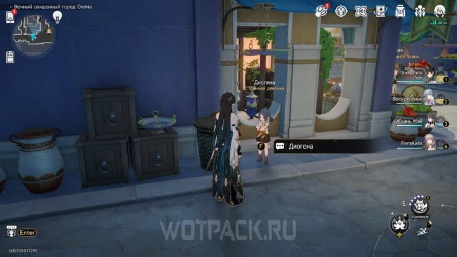 Pista de ubicación: Busque a una chica que esté sentada en una canasta de mimbre en Ochem — este encuentro es parte de la secuencia de tareas.