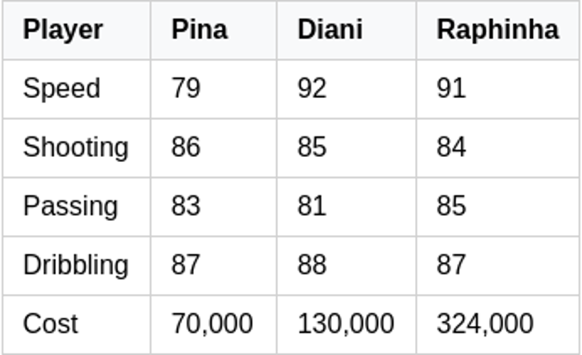 En resumen: Pina ofrece tiros de élite, estilos de juego técnicos y versatilidad posicional a un precio de ganga; la compensación es que no es la opción más rápida, lo que mantiene su valor en monedas razonable.